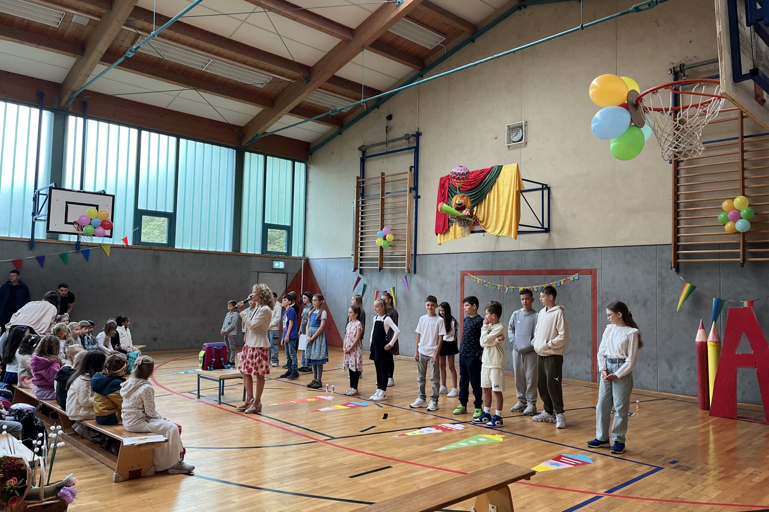 Am Samstag, den 13. September, fand an der Heide-Grundschule bei strahlendem Sonnenschein die diesjährige Einschulung statt. Die Schulanfänger*innen wurden von ihren Klassenlehrkräften und Erzieher*innen begrüßt und zogen gemeinsam in die festlich geschmückte Sporthalle ein, wo bereits ihre Eltern warteten. Die Schulleiterin hieß